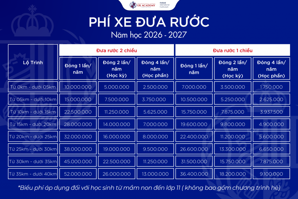 - Hệ thống xe đưa đón hiện đại.