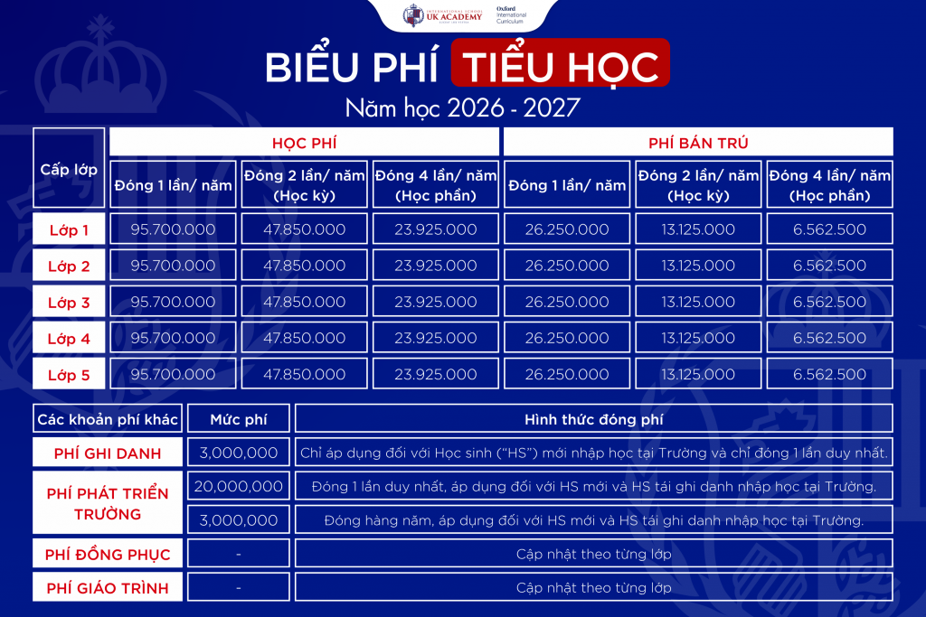 Với 4 môn Toán, Tiếng Anh, Khoa học, Wellbeing (Sức khoẻ – Quản lý cảm xúc xã hội). Giúp học sinh lấy các chứng chỉ PET/KET/Flyer/Mover/Starter. Năng lực tiếng Anh tương đương bậc A2/A2+ tự tin giao tiếp và sẵn sàng hội nhập toàn cầu.